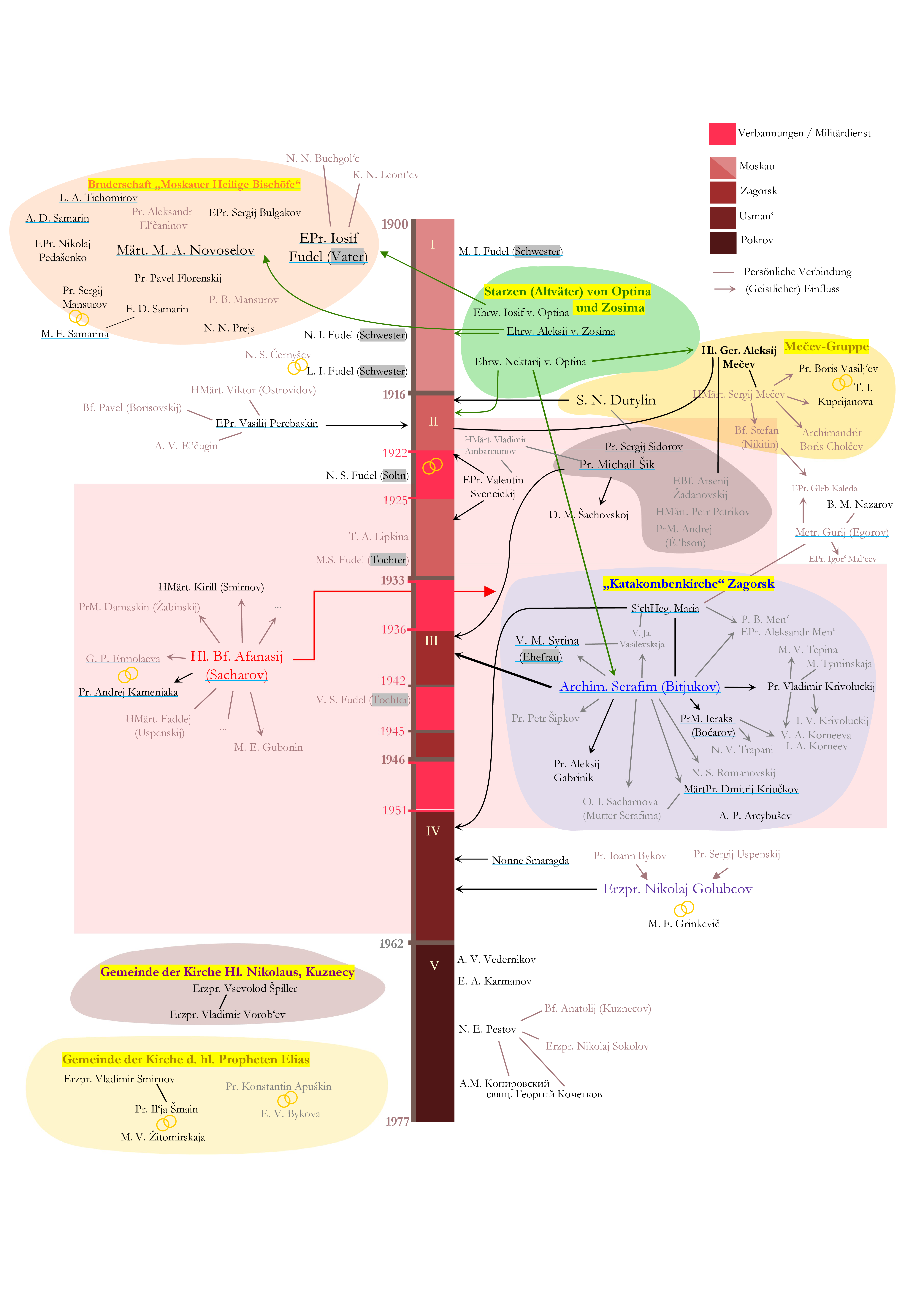 Eine Übersicht unserer Partnerseite Fudel.ru (Link zum Original), die wir für die deutschsprachige Website etwas vereinfacht haben. Zukünftig werden immer mehr Namen verlinkt, so dass zu wichtigen genannten Personen weitere Informationen verfügbar sein werden.